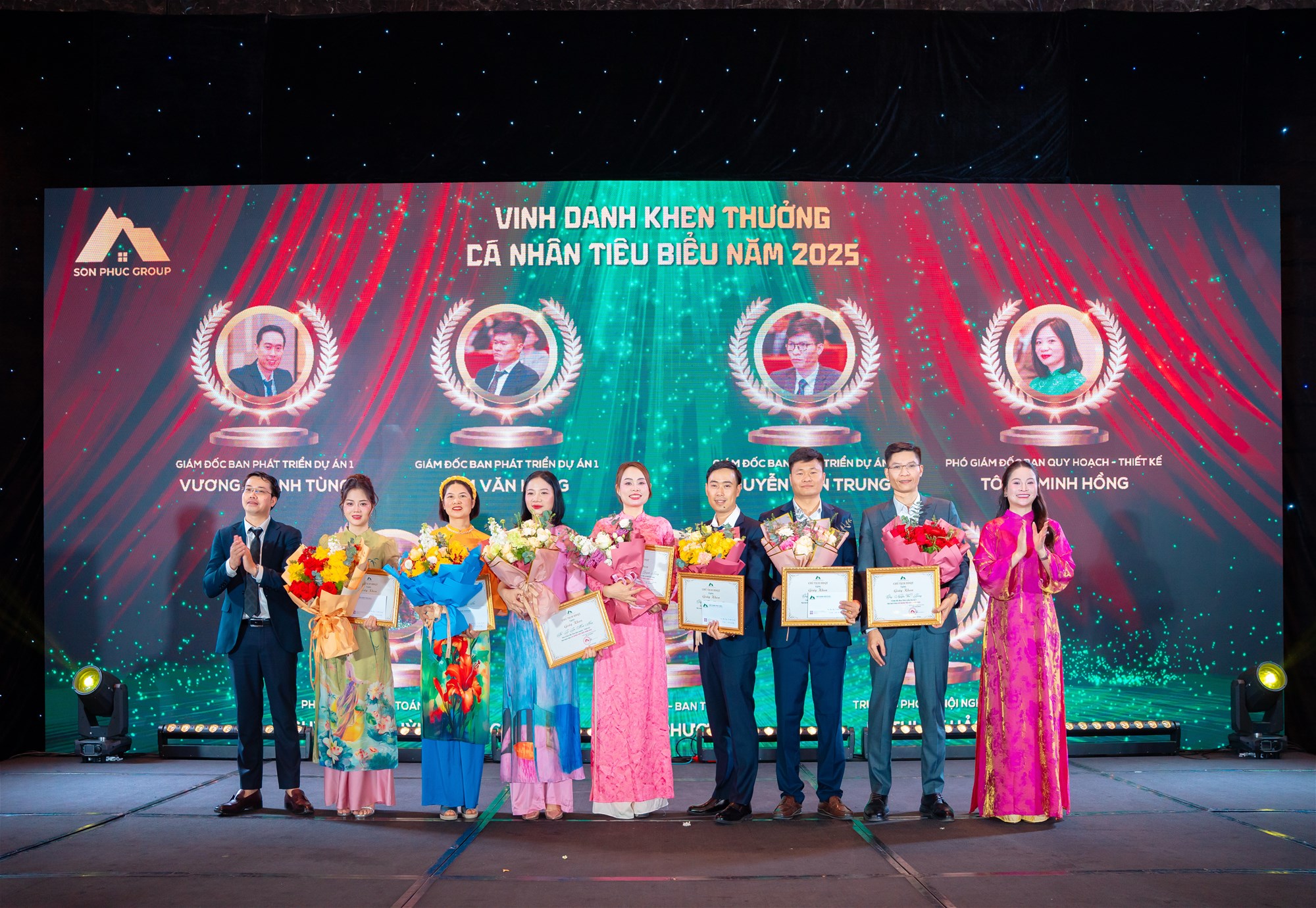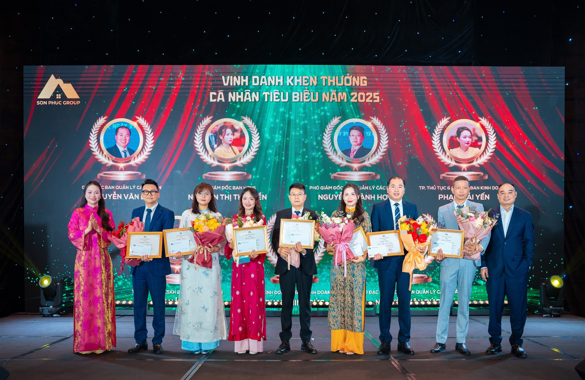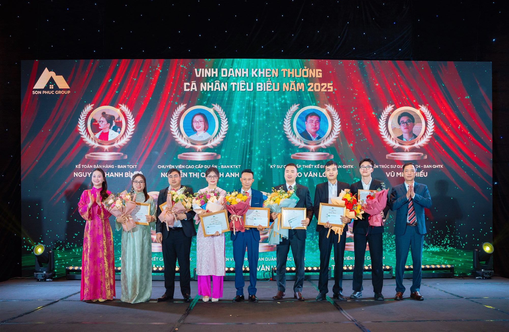 Tiếp nối chương trình là hoạt động vinh danh và khen thưởng các cá nhân, tập thể có thành tích nổi bật trong năm, cùng với sự tri ân các cán bộ nhân viên có thâm niên công tác từ 5 năm trở lên – những người đã bền bỉ đồng hành, đóng góp vào sự phát triển ổn định và lâu dài của Tập đoàn Sơn Phúc. Những phần thưởng được trao là sự ghi nhận xứng đáng cho tinh thần trách nhiệm, sự bền bỉ và tính kỷ luật trong công việc, đồng thời lan tỏa mạnh mẽ thông điệp về văn hóa doanh nghiệp mà Sơn Phúc luôn kiên định xây dựng – nơi con người được đặt ở vị trí trung tâm và giá trị cống hiến luôn được trân trọng.